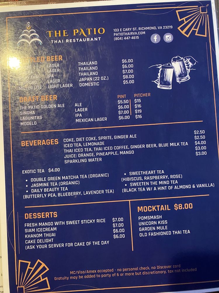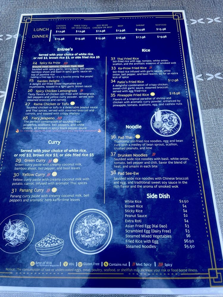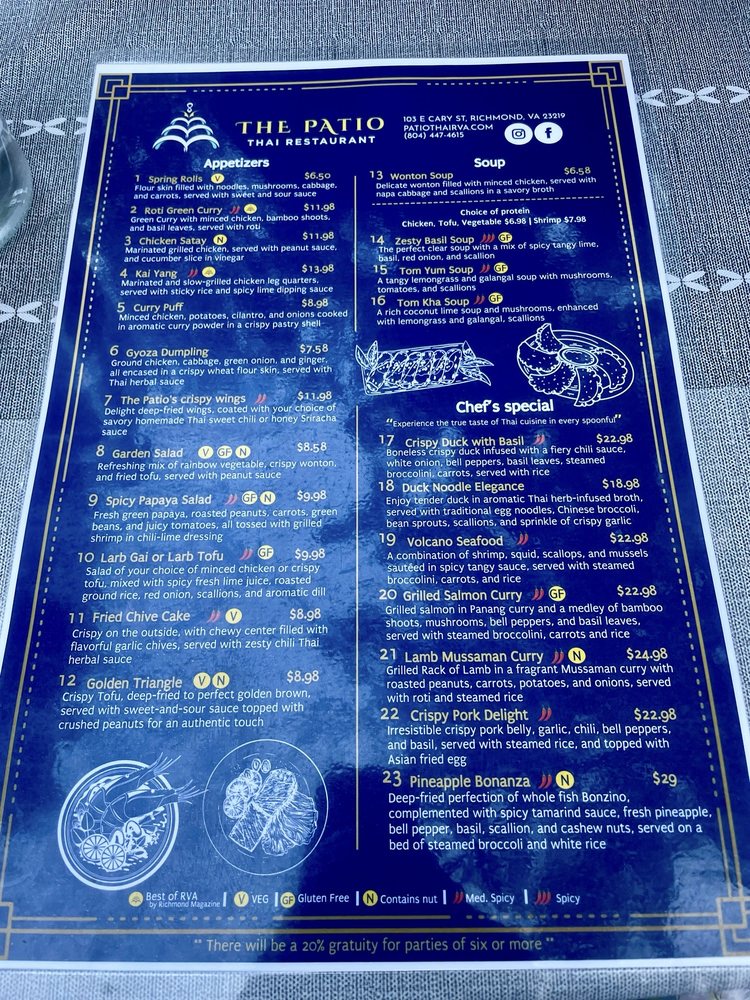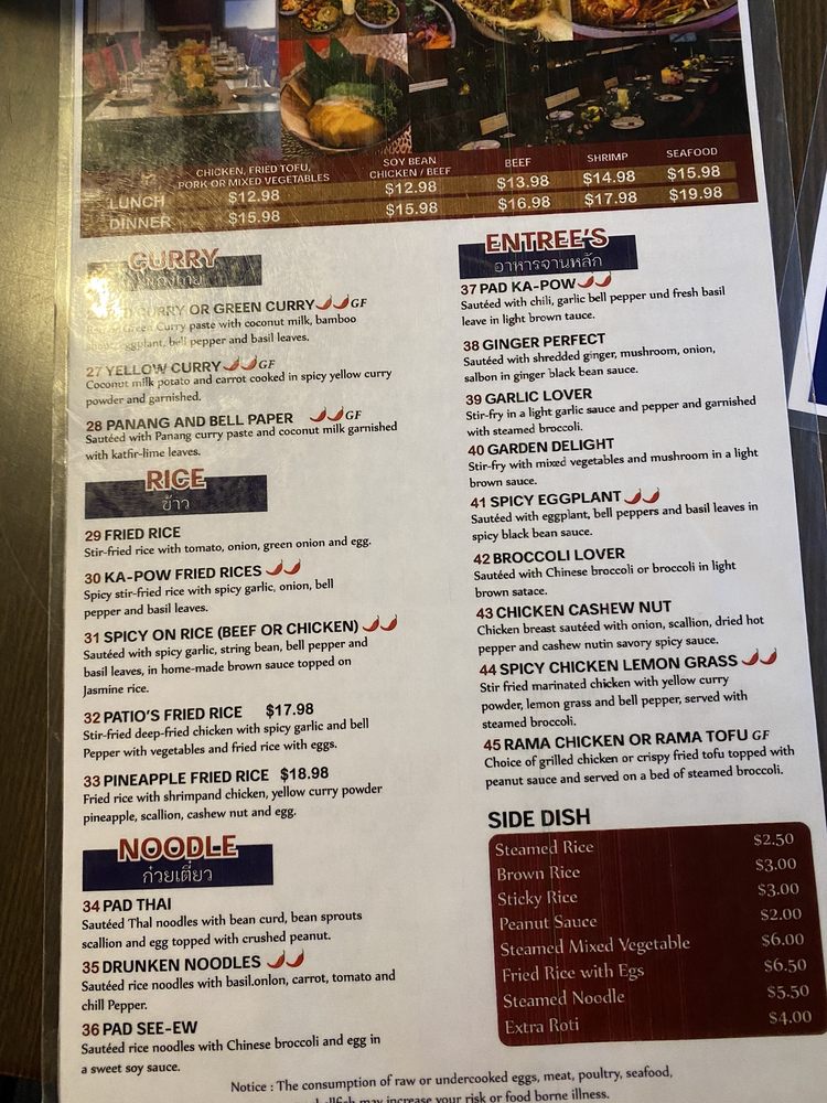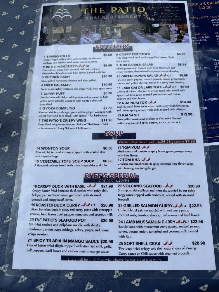 The Patio Thai Menu